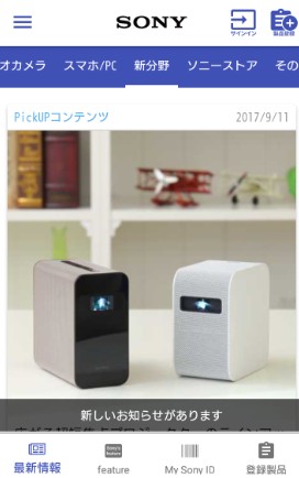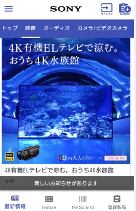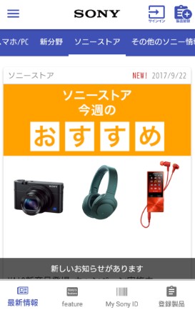 また、アプリからソニー製品の最新情報、ソニーストアのキャンペーン情報などを知ることができます。