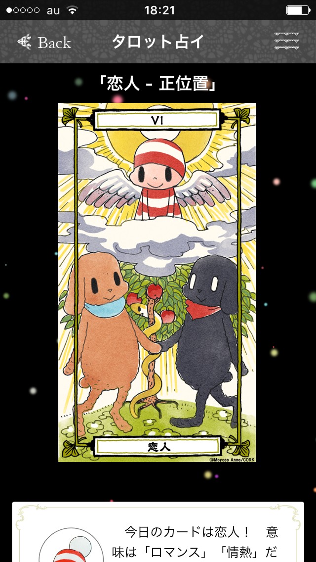 毎日楽しめる、オチビサンがかわいく占ってくれる「オチビサン・タロット占イ」など、