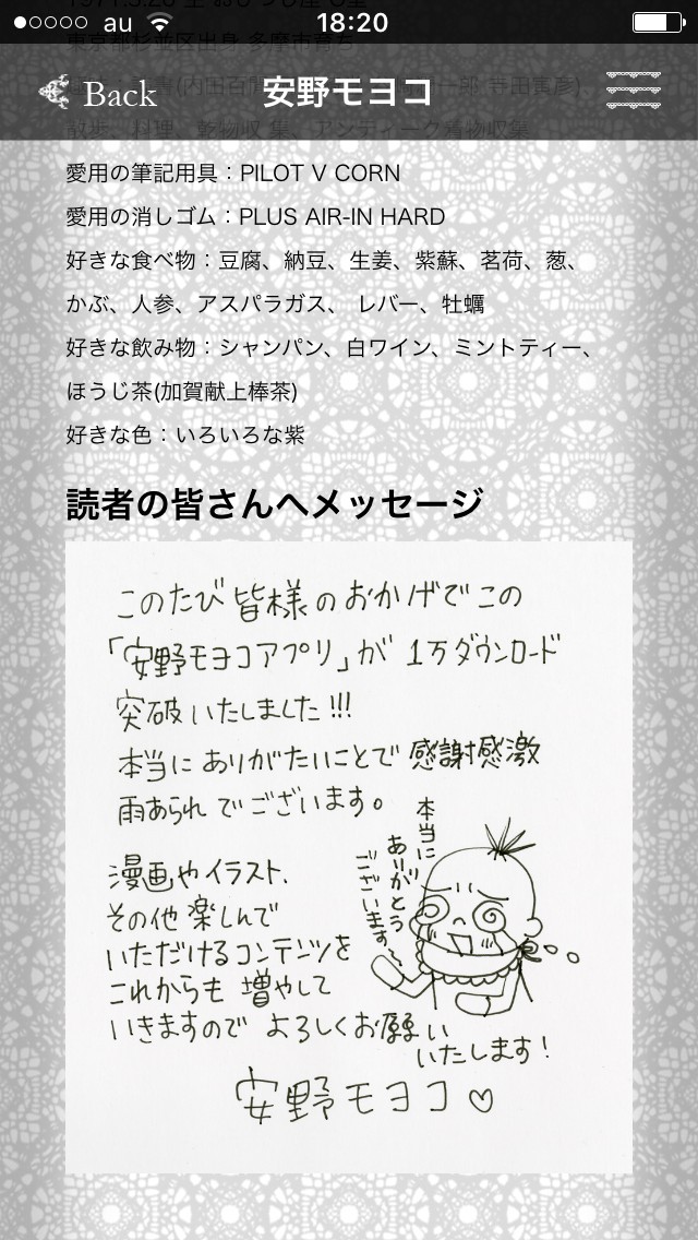 そのままずばりなネーミング「安野モヨコ」というアプリは、人気漫画家・安野モヨコさんの公式アプリです。