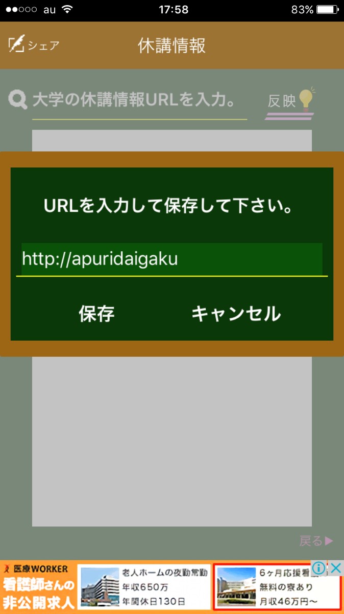 休講情報機能に自分の大学の休講情報URLを張り付けることができます。一度設定しておけば、すぐに休講情報を確認することができますよ。