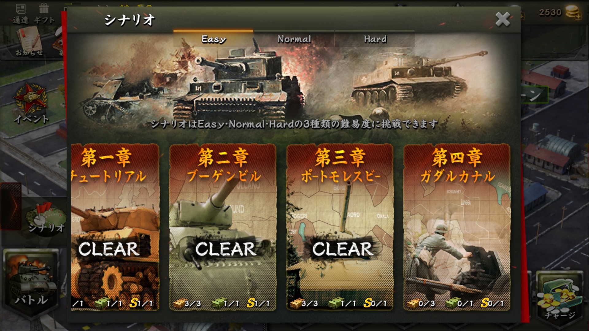 「シナリオ」はノルマンディー上陸作戦などの史実会戦を元にしたステージを自分の師団で戦っていくモードです。