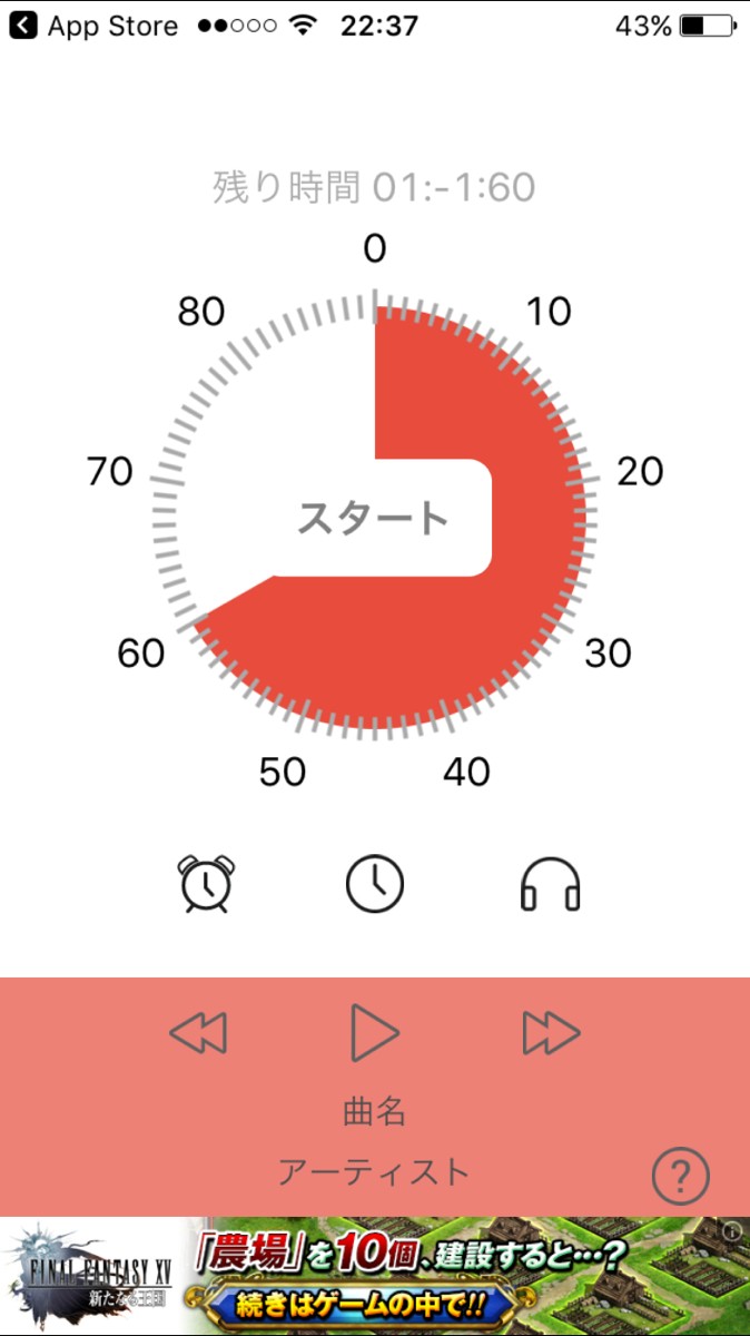 トップ画面に戻ると設定した時間が表示されるので、作業を始める時に「スタート」ボタンを押してください。途中で時間を止めたい時には「ストップ」ボタンを押します。時間を変更したい場合は、再度時計マークから時間を設定することが可能です。