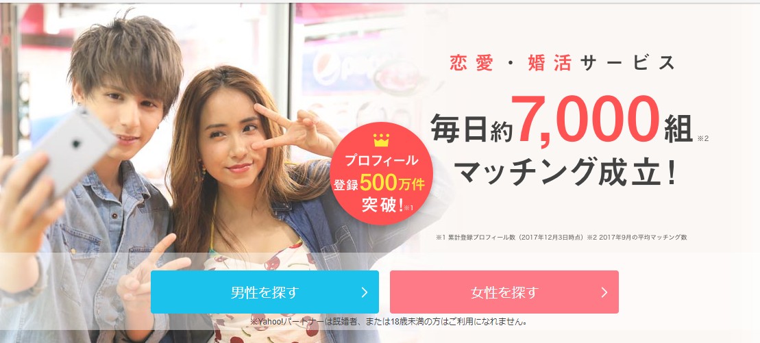 2006年に運営を開始した、「Yahoo!パートナー」。10年以上の歴史を持つ老舗出会い系アプリとして、出会いを求める人たちから支持されています。Yahoo!パートナーは、男性は有料で登録、女性は無料で登録が可能です。女性に広く門を開けている、出会い系アプリと言えます。Yahoo!パートナーでは、他の出会い系アプリとは違う検索方法を導入。「近況報告」と呼ばれるこの方法は、Facebookなどでいうコミュニティのようなものを使って、相手を探すことができるようになっています。Yahoo!パートナーに登録している人なら、誰でもグループを作成することができるので、アプリ上には2万個近くのグループが存在しています。グループ内のつぶやきや写真投稿などから相手の検索をかけることができるので、実際に相手と会っているような感覚でパートナー探しをすることができます。相手の趣味なども他のアプリに比べ知りやすいので、初デートへつなげるための話題作りにも事欠きません。相手が興味を持つような話題に触れ、初デートの約束を取りつけましょう。