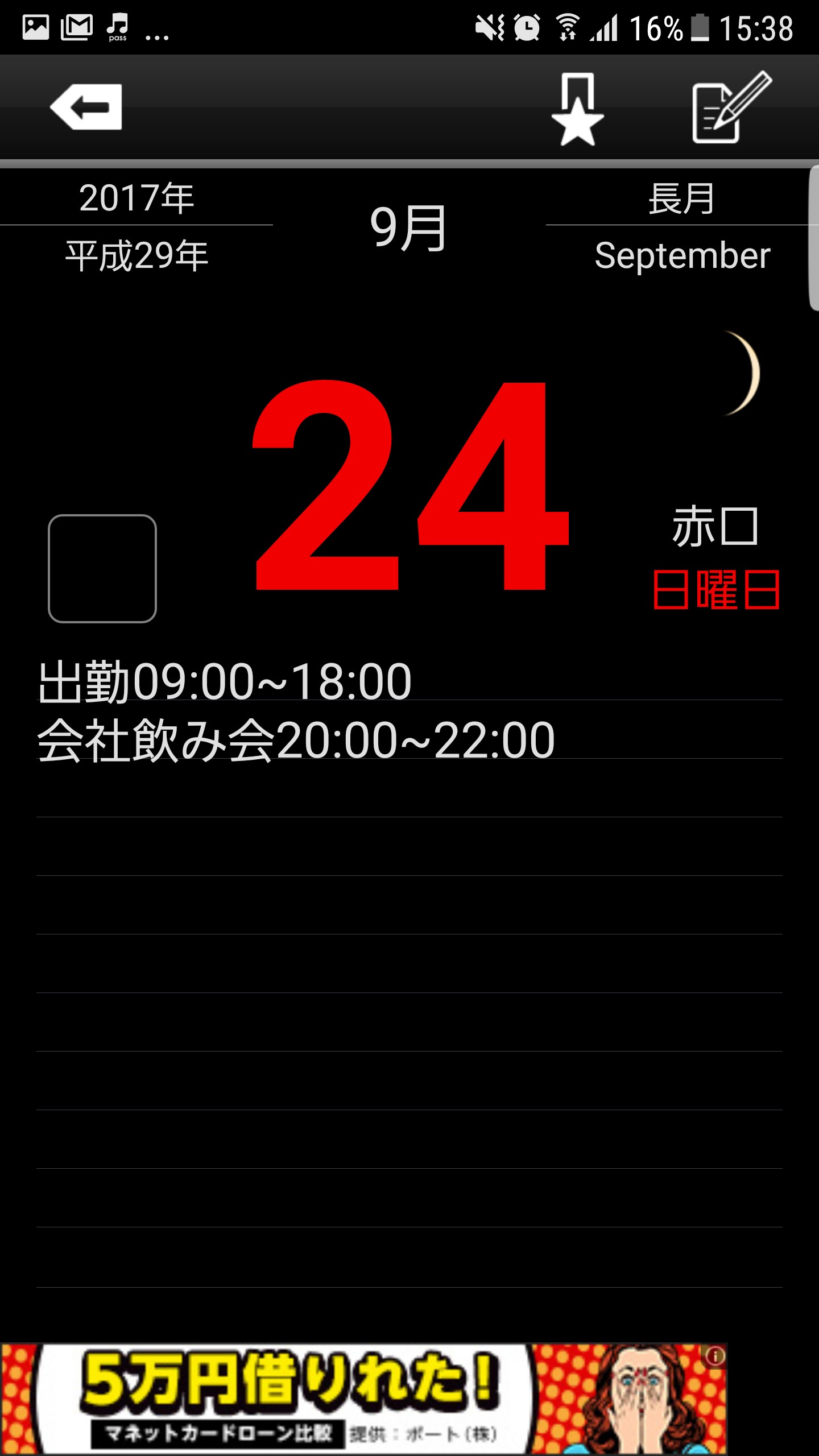 カレンダーの表示方法が月表示、日表示に対応しており、ご利用者様でお好きな表示スタイルに変更できるのが魅力です!また、本アプリも祝祭日の表示にも対応しており、さらに大安や仏滅などの六曜表示にも対応しています。