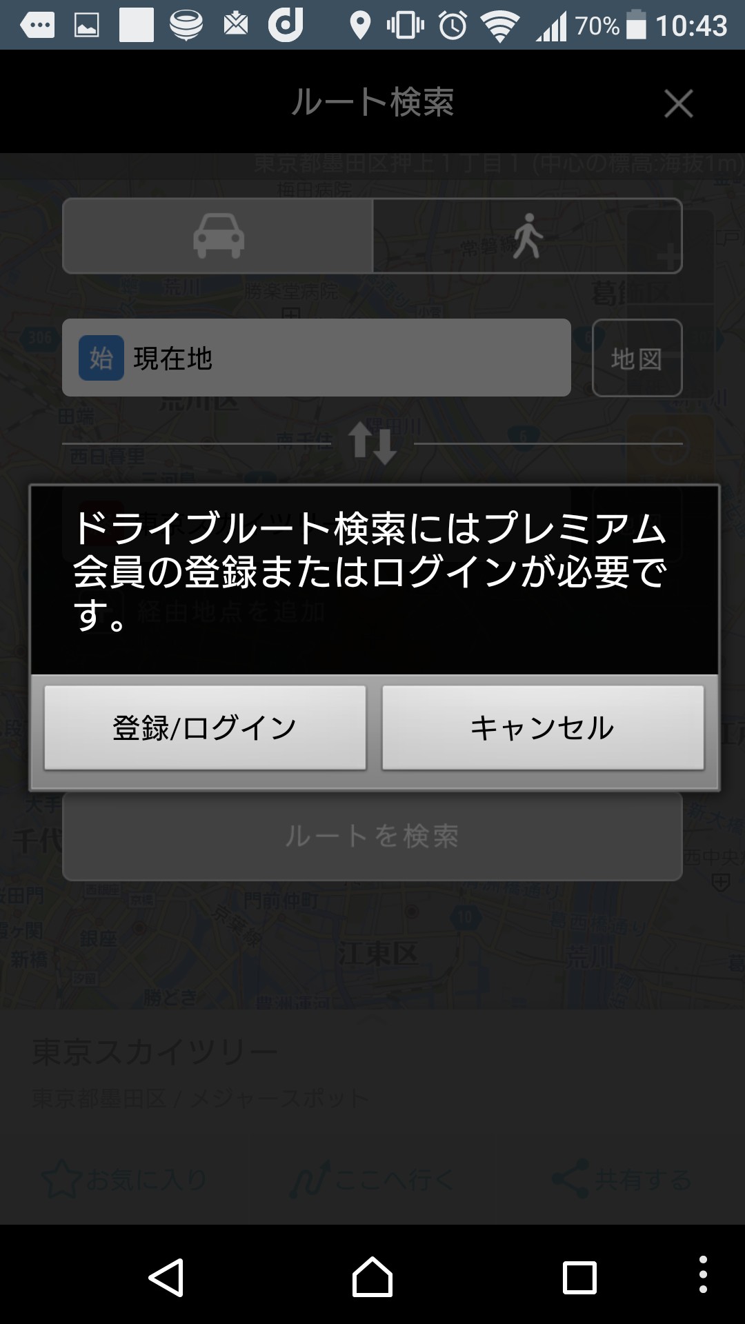 先ほど紹介したように、地図マピオンでは車のルート検索の際はプレミアム会員登録が必要になります。