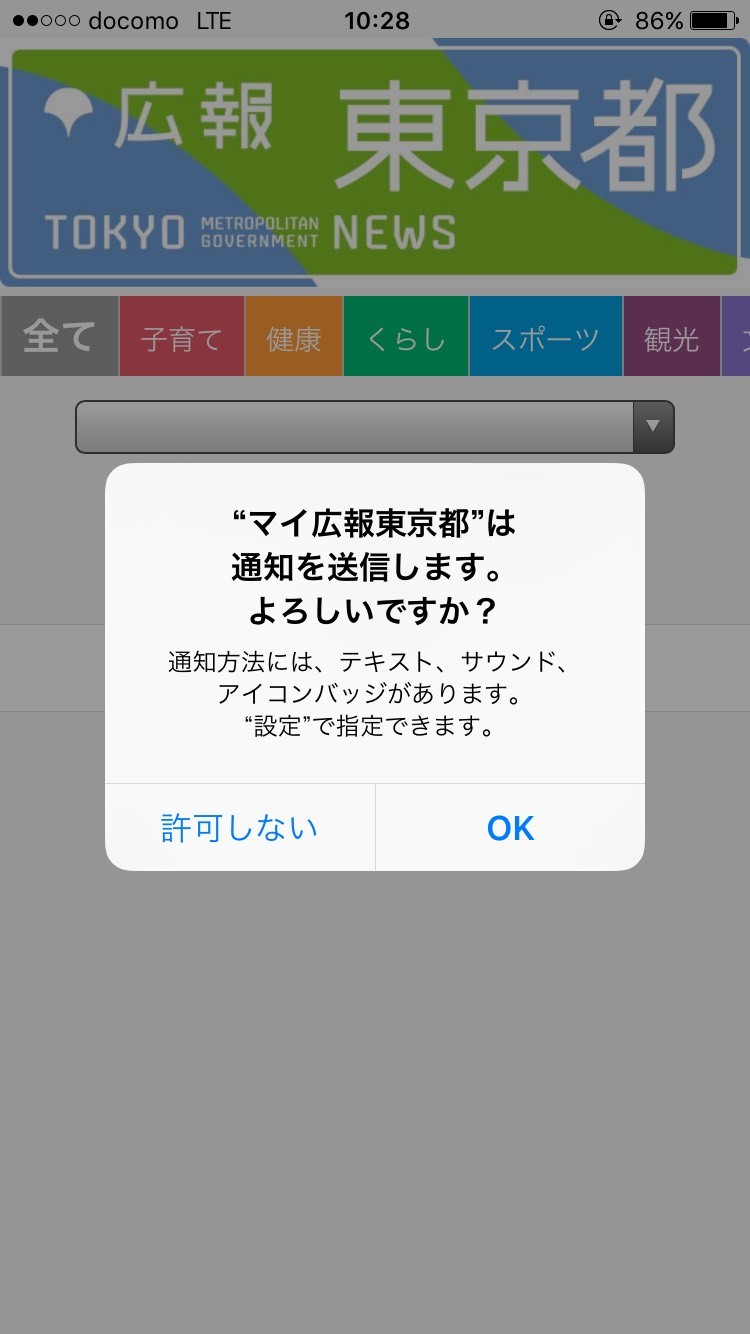 「マイ広報東京都」では大事な情報を逃さないために「子育て」「健康」「くらし」「スポーツ」「観光」「文化」「しごと」「講座」「その他」の9つの項目のカテゴリーなどをプッシュ通知で届けてくれます。プッシュ通知だとアプリを閉じていても自動で届くので大事な情報を見逃すことはありません。プッシュ通知の設定はアプリ起動時に「プッシュ通知を許可しますか」と表示される時にはOKを選択するだけなので簡単に設定できます。また「マイ広報東京都」は毎月1日に発行されているので、1日ではすべて閲覧することができなくても配信されてから1ヵ月間何度でも繰り返し情報を確認することができます。さらにバックナンバーが2年前の平成27年まであるので、万が一大切な情報を見逃した場合や過去の調べものをしたいときも役立ちます。