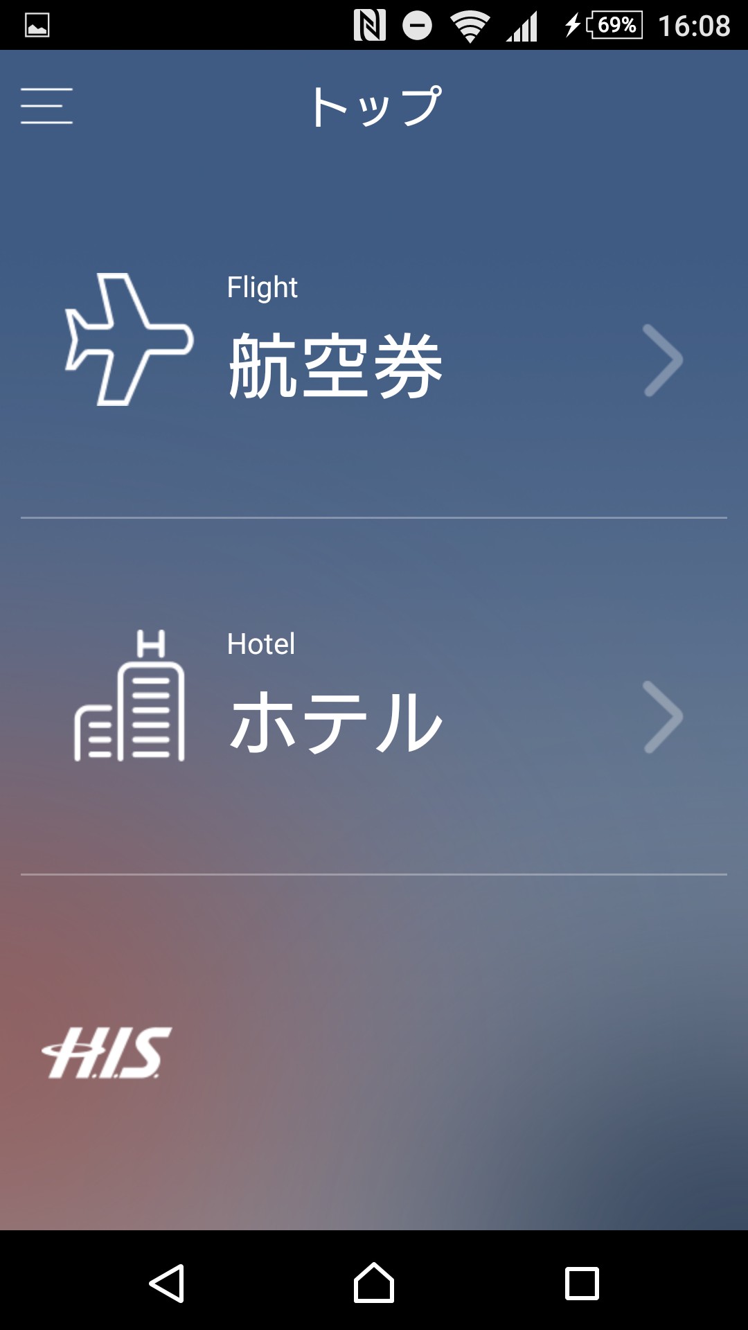 旅行会社の方とやり取りした方が確実で楽かと思っていましたが、JRの乗車券のようにネットで予約した方が確実で楽なのではないかと思い始めていたところ、よく利用するH.I.S.さんで提供している「H.I.S. 航空券・ホテル - 航空券、ホテル、航空券+ホテルの商品を便利にアプリで予約!」を見つけました。
