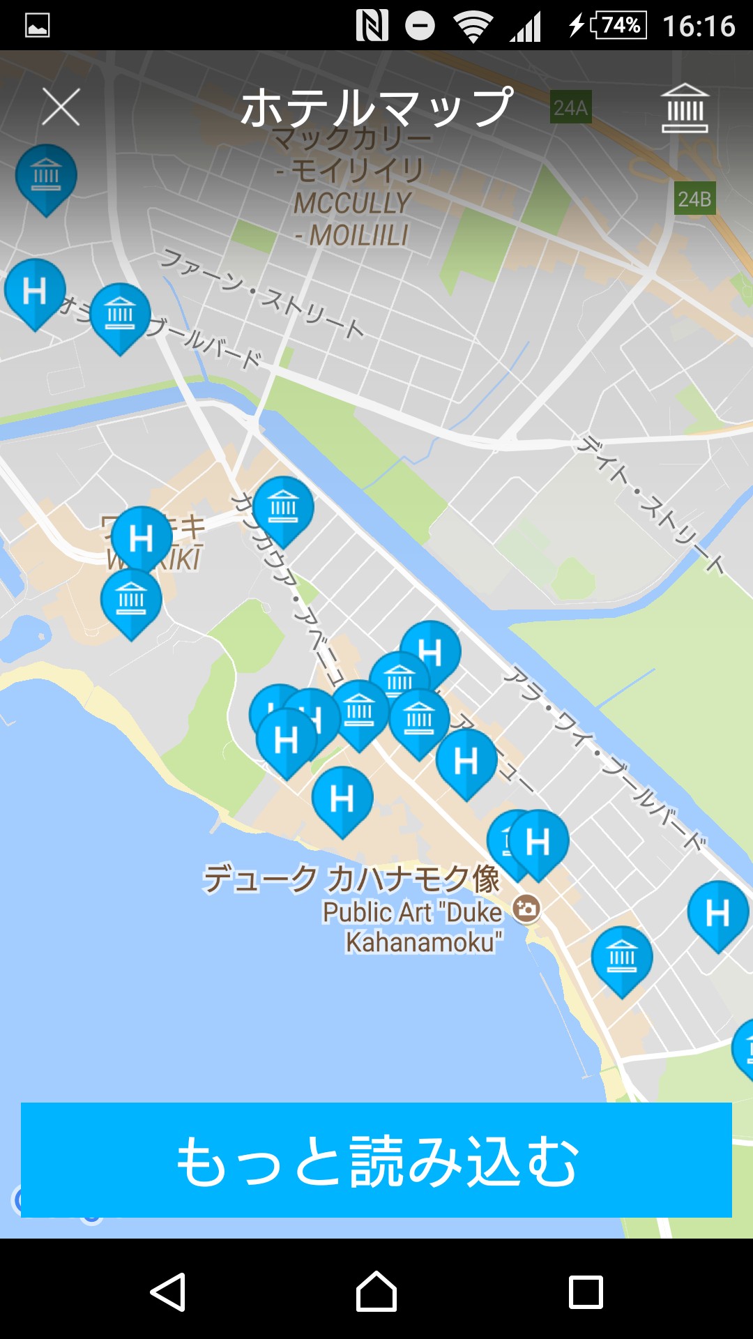 - 各ホテルの場所を地図上に表示、目的地に最も近いホテルを探せる。