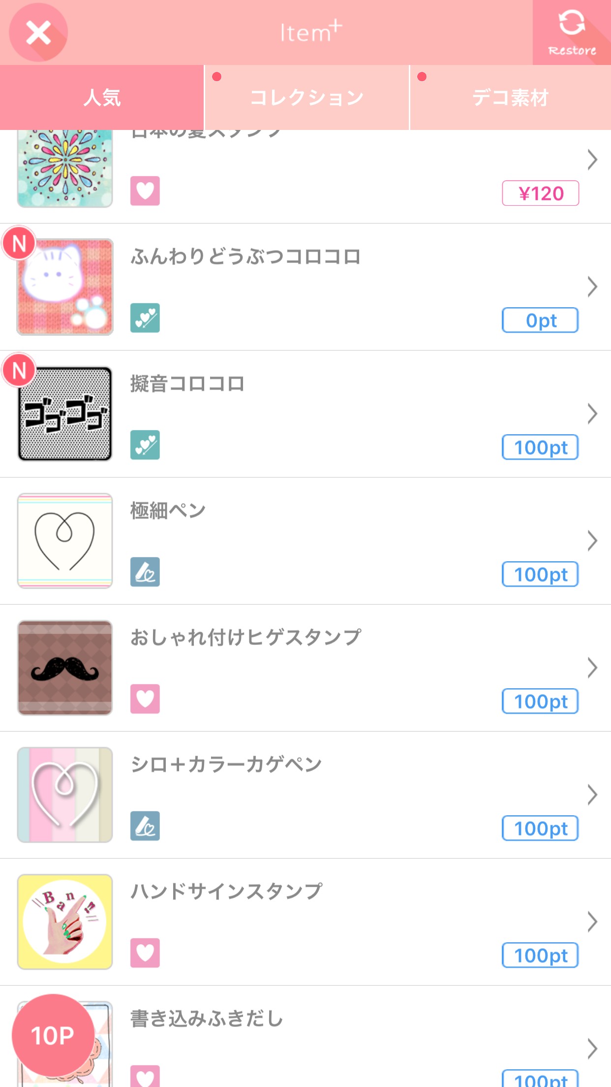 楽画cuteの魅力は何と言っても使いやすさとデコ素材の多さです。まず縁取りペンの種類が豊富なので、このペンを使って文字入れするだけでプリクラ風にすることができます。そしてペンだけではなくスタンプも充実しています。モノクロでおしゃれなものからピンクや薄紫のゆめ可愛いスタンプまで種類がたくさんあり、ロールタイプのものまであります。