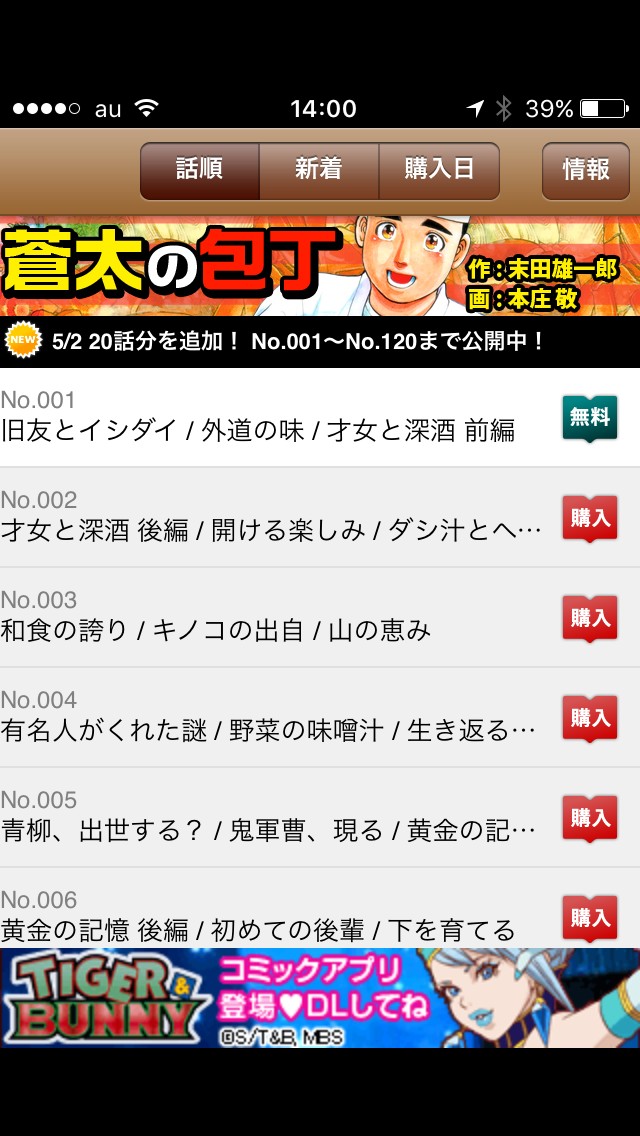 しかし「蒼太の包丁」を利用すれば、アプリ1つで現在公開されているNO.1~120までのストーリを読み進めることが可能です。
