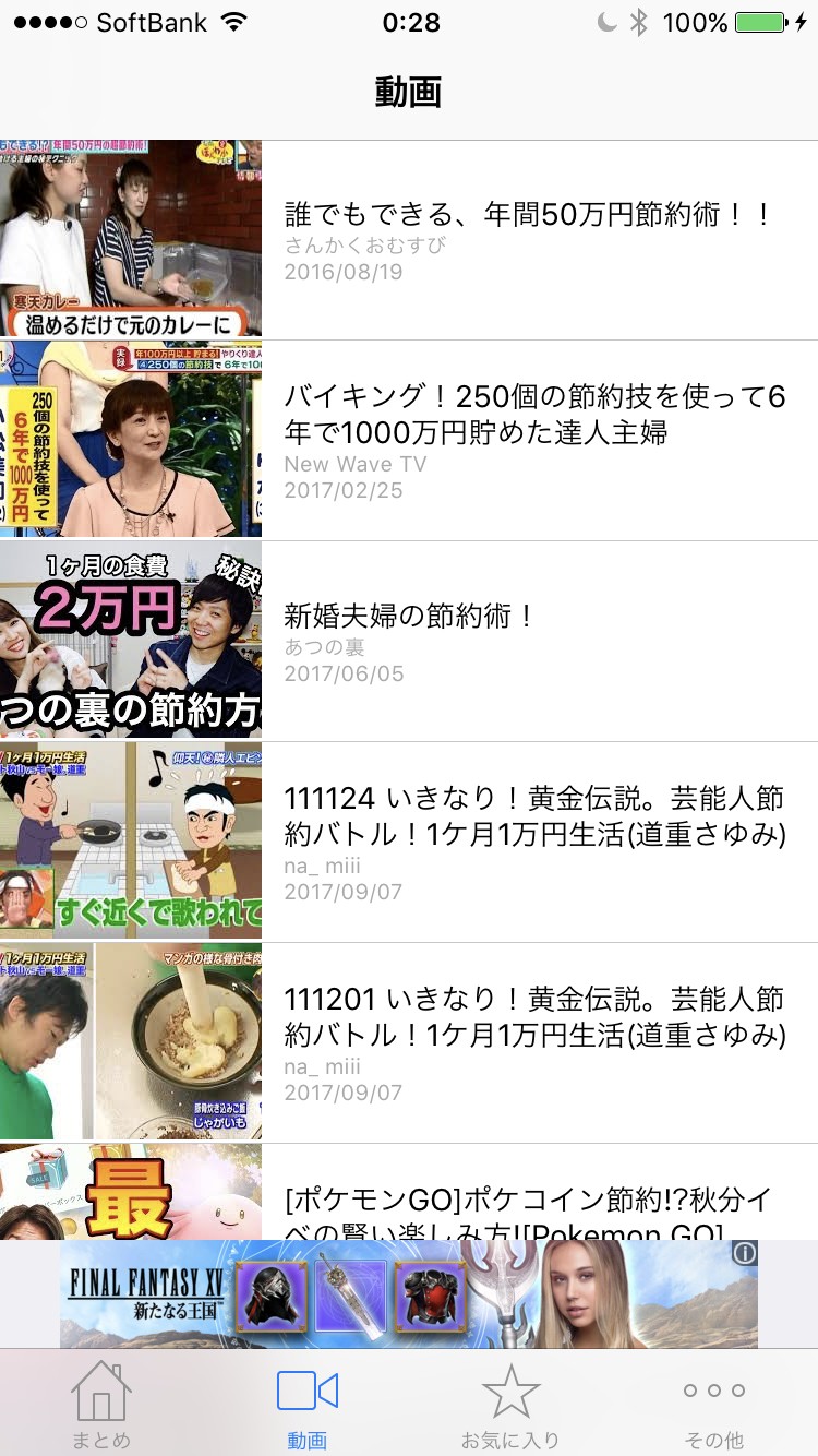 おそらくYOUTUBEでの節約に絡んだ動画が並んでいます。