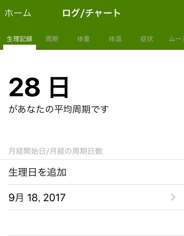 生理周期の記録のつけ方はかんたんです。生理は始まったら、アプリを開いてホーム画面の「生理開始」を押します。生理が終わったら「生理終了」を押します。これだけで記録は完了です。また、次回の生理予定日もかんたんに分かります。使い方は、生理終了後であれば、アプリを開くとホーム画面に「生理開始予測日は●月●日」「予定●日前です」と大きく表示されています。生理の記録を修正したいときは、アプリのホーム画面下の項目にある「ログ/チャー」を押して修正したい項目を選択したり新規に生理日を追加することができます。さらに、毎日のからだの状態をカレンダーに細かく記録しておくことができます。使い方は、ホーム画面の下の項目「カレンダー」を押すと該当月のカレンダーが開きますので、記録したい日付をカレンダー上で選択しながら画面右上のプラスボタンを押すと、記録画面に移ります。「メモ」「症状」「ムード」「その他」の4項目にそれぞれ記録することができます。