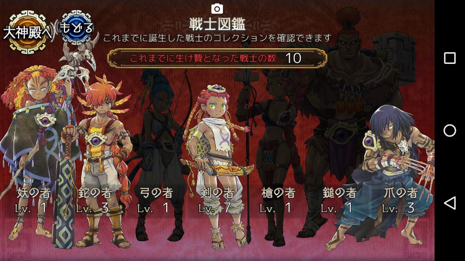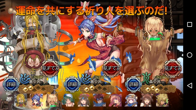 このゲームの最も特徽的な点は独特な世界観と生贄よる育成システムです。他のゲームですと、クエストをこなしたり合成素材などを使ってキャラクターを強化できますが、このゲームでは戦士の育成は生贄の儀式によってのみ可能となります。