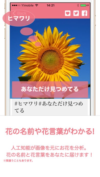 このFLOWERYという画像認識アプリは、たくさんある花の名前や、その花の花言葉を教えてくれる癒し系画像認識アプリです。知りたい花の写真をFLOWERYで撮るだけで、アプリ内の人工知能が写真を検索し、花の名前を導き出します。このアプリを持っていれば、子どもに道端に咲いている花の名前を質問されたときに、名前と一緒に花言葉まで教えることが可能。気に入った花の写真は、コレクション機能でアプリ内に保存できます。また、SNSとの連動もできるので、友達と花の情報をシェアできるのも魅力です。