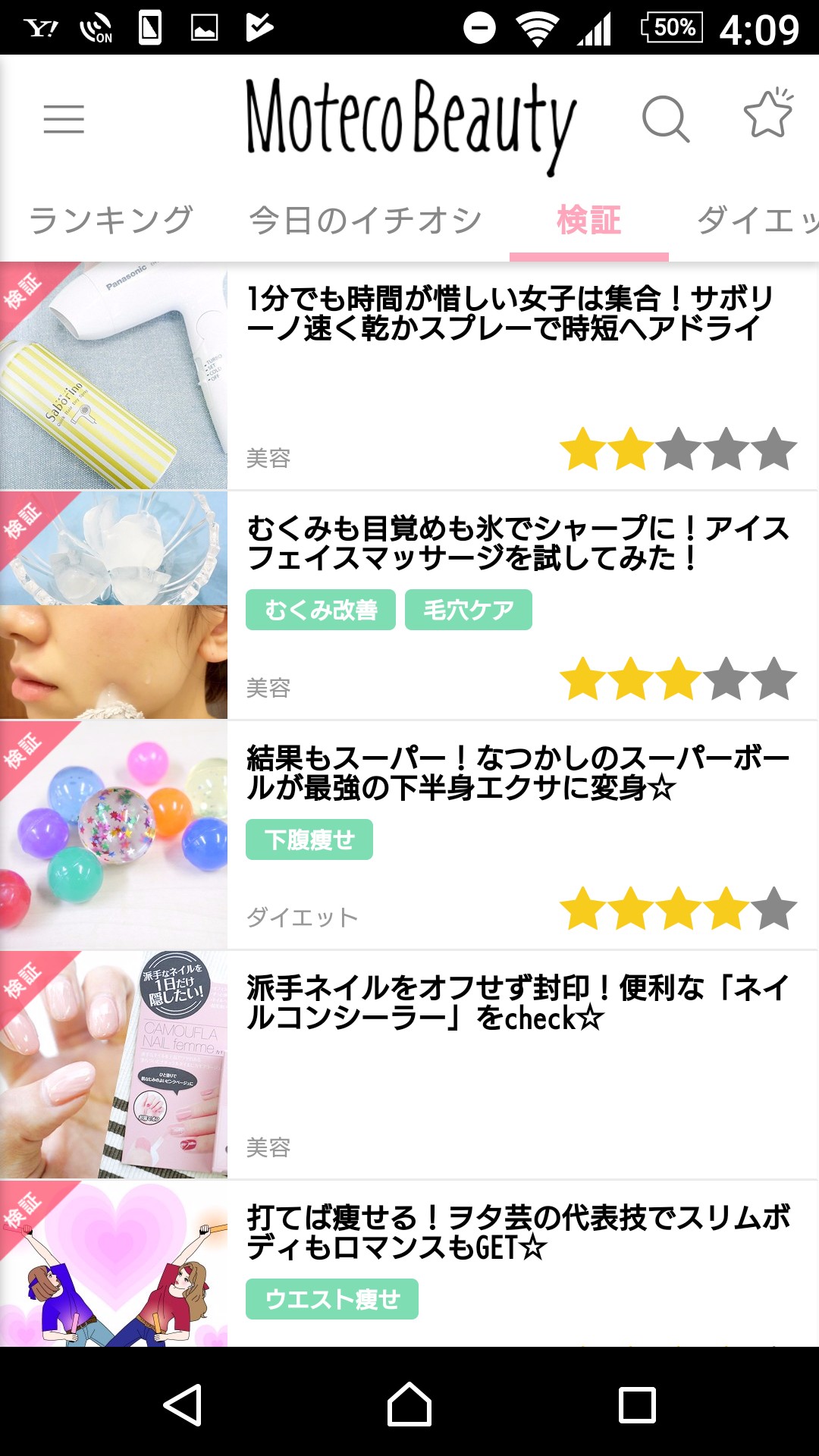 様々なダイエットの効果をあげてくれるアプリが存在しますが、MotecoBeautyはダイエットの基礎知識を始め、実際にダイエット法を検証して結果を数値でレポートしてくれる記事があります。ダイエットに美容、レシピや恋愛など、まさに実用的で女性が輝くための情報が詰まっていますよ。