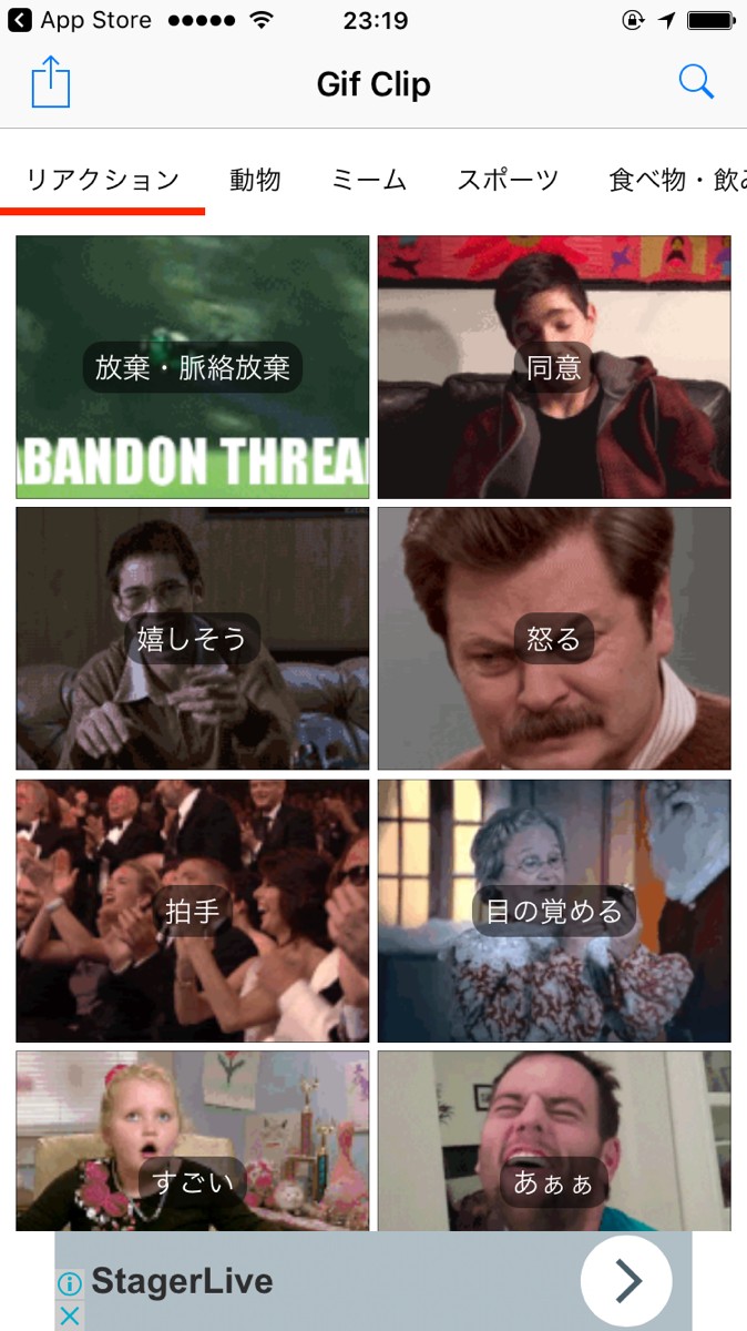ネット上にあるGIF画像を検索し、再生や保存が可能なアプリです。
