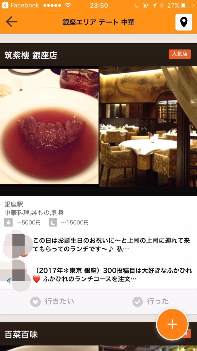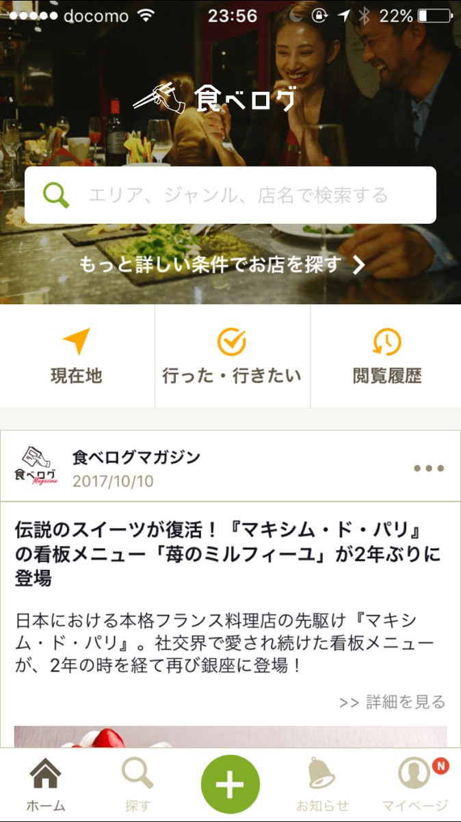 「食べログ」も、多くの人に知られている有名グルメアプリです。約1,998万件以上と圧倒的な口コミ数を誇っているのが特徴で、そのすべての口コミを無料でチェックすることができます。基本機能には、GPS機能を使った現在地周辺の飲食店を1タップですぐに探す機能や、「行った・行きたい」のボタンでお店登録をして自分だけのリストを作成できる機能などがあり、使いやすさについても他アプリに劣りません。また、おすすめのお店はFacebookを通じて、友人と共有することも可能です。口コミ重視でグルメアプリを使いたいという人には、「食べログ」がおすすめです。