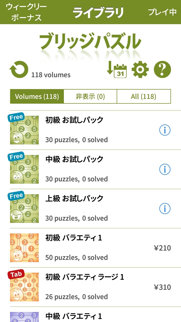「コンセプティス ブリッジパズル」には無料のお試しパックが初級、中級、上級とあります。