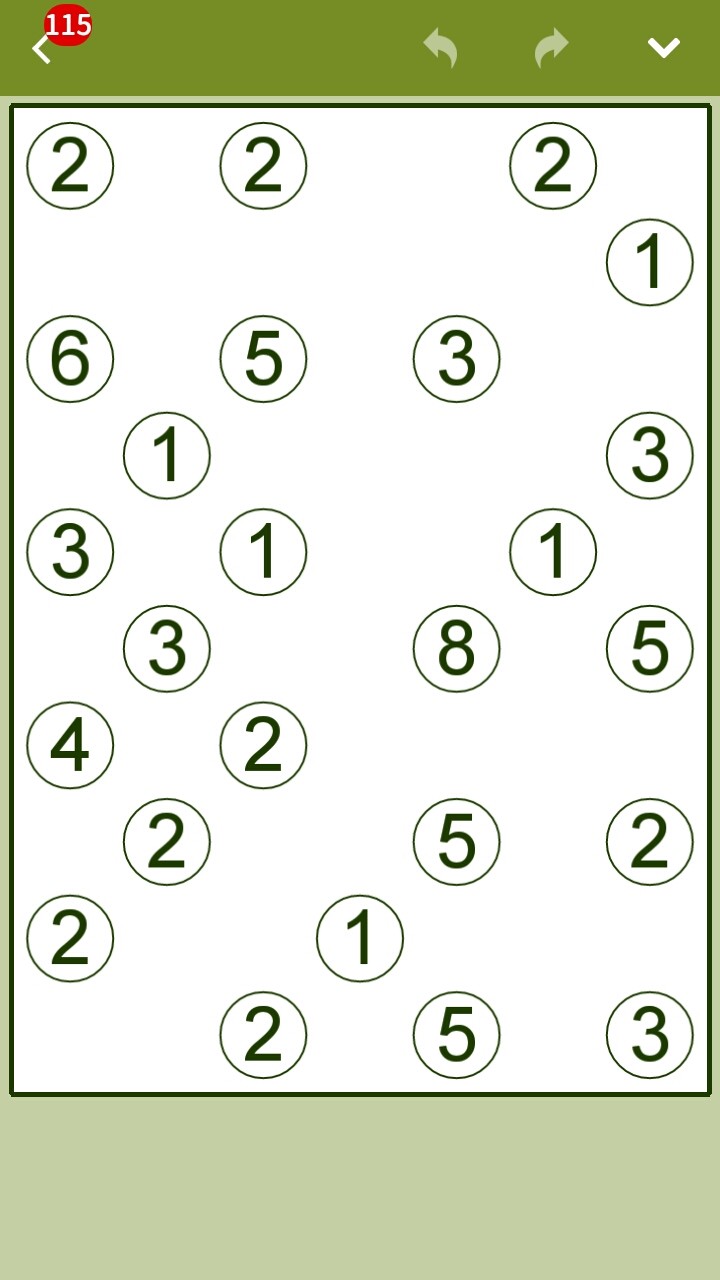 問題を始めると現れるのは、不規則に並ぶ数字が書かれた丸。これが「島」です。