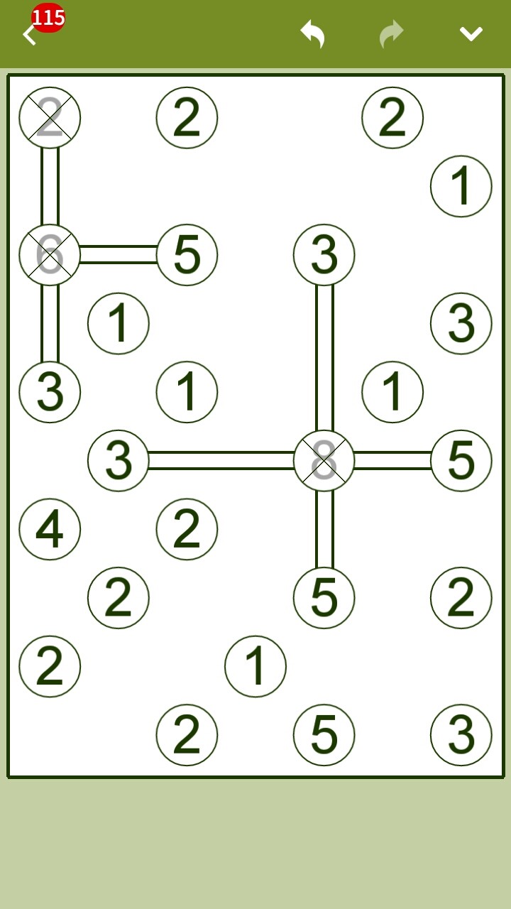 この「コンセプティス ブリッジパズル」だと、橋を使い切った島はバツ印が付くようになっているので、すべての島にバツ印が入ればクリアですね。