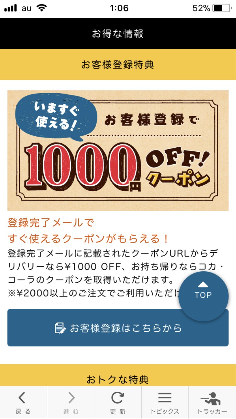 「Domino’s App − ドミノ・ピザのネット注文」では様々なお得クーポン機能が使えます。チラシやパンフレットについているクーポンはもちろん店舗で商品をお持ち帰りするとピザがもう1枚無料になる「お持ち帰り特典」や水曜日限定の「デリバリー特典」などお得なサービスがアプリでも利用可能です。さらにお客様登録ですぐに使えるクーポンがもらえたり、メールマガジンに登録すればネット注文で使えるお得な限定クーポンを定期的にゲット出来ます。
