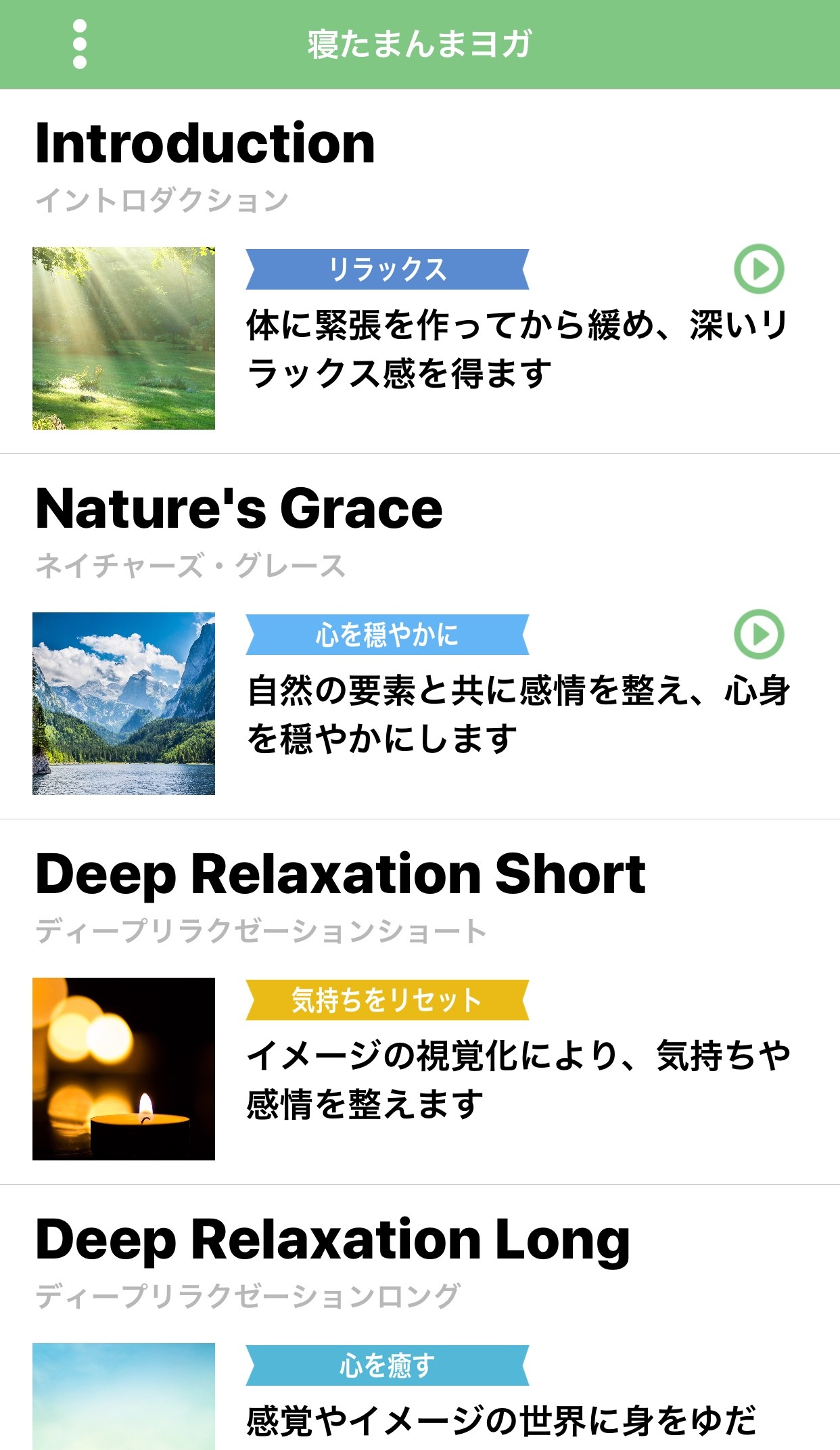 始めるというボタンを押し、好きなヨガをタップします。すると動画がありますので、その動画を横になりながら聞きます。ヨガといっても難しいものではなく、動画の女性の声も優しいのでそのまま眠りに落ちてしまうことも…。気持ち良い状態で眠りに入ることができますし、自律神経のバランスを整える効果も期待できます。