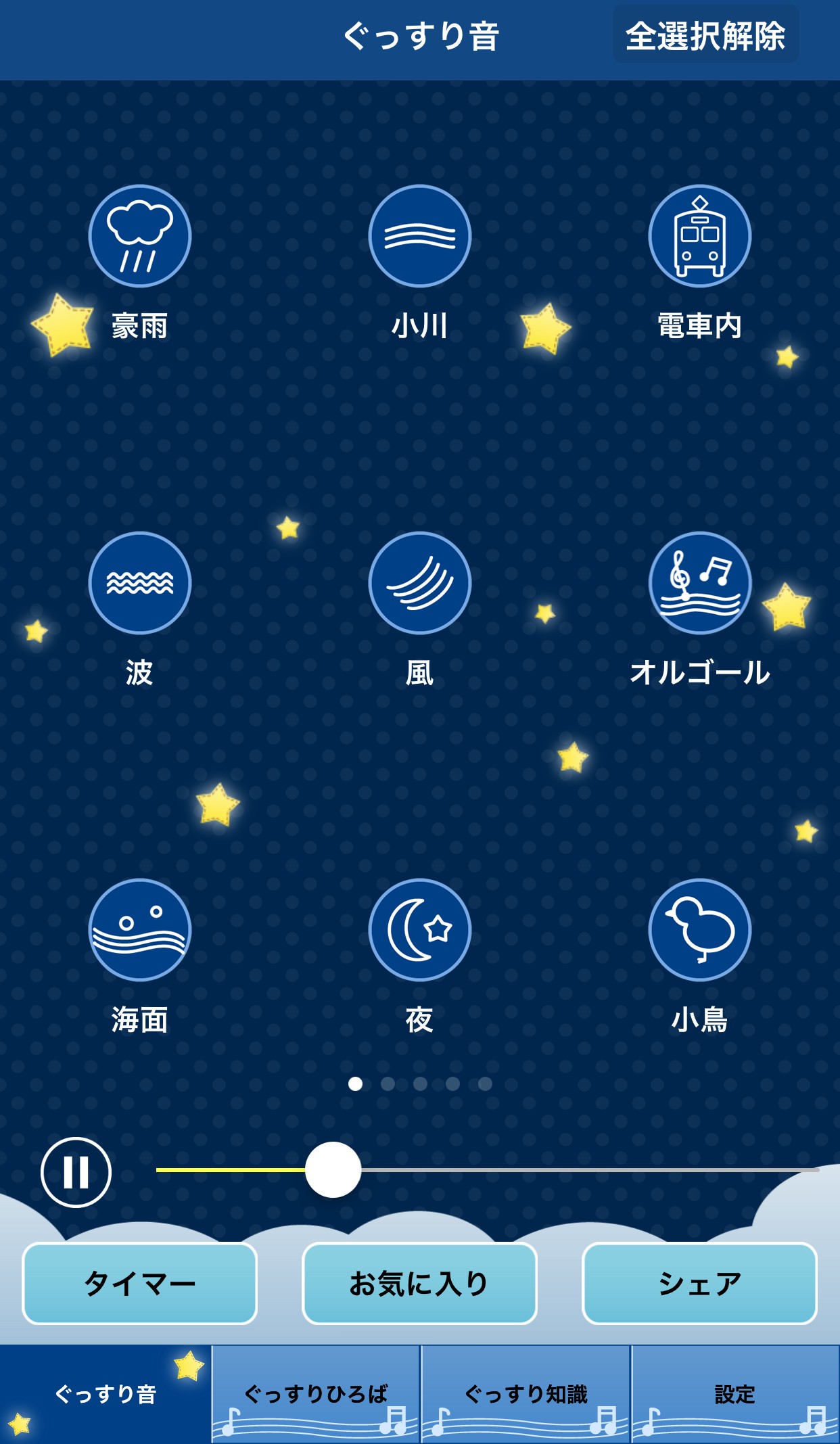 豪雨や電車内、オルゴールといった眠くなりやすい音を自分好みに組み合わせて流すことができるアプリです。使い方は簡単でそれぞれのボタンをタップするだけ。なかなか寝付けない時などに好きな音を聞きながら布団に入ると眠りやすくなります。寝れなくてスマホをいじってしまう時にもおすすめできます。