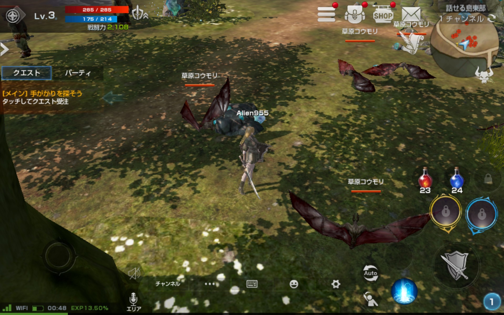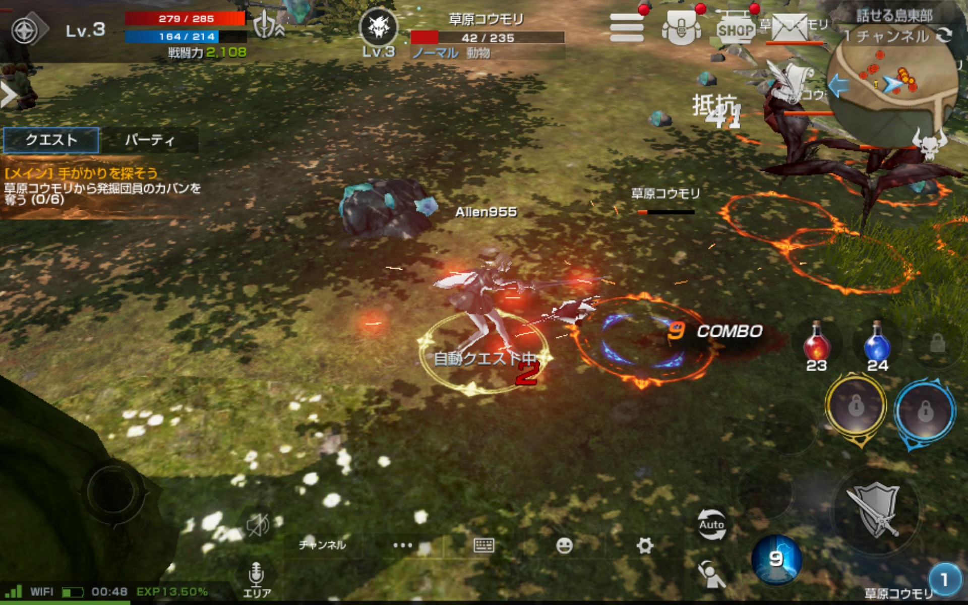 クエストリストをタップすればクエストの目的地まで自動で移動し、戦闘を行ってくれます。