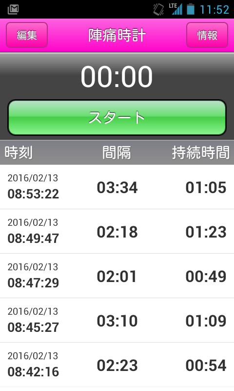 このアプリは陣痛がきた時とおさまった時にボタンをタップするだけで間隔が計れるので、前駆陣痛か本陣痛かも簡単に分かります。