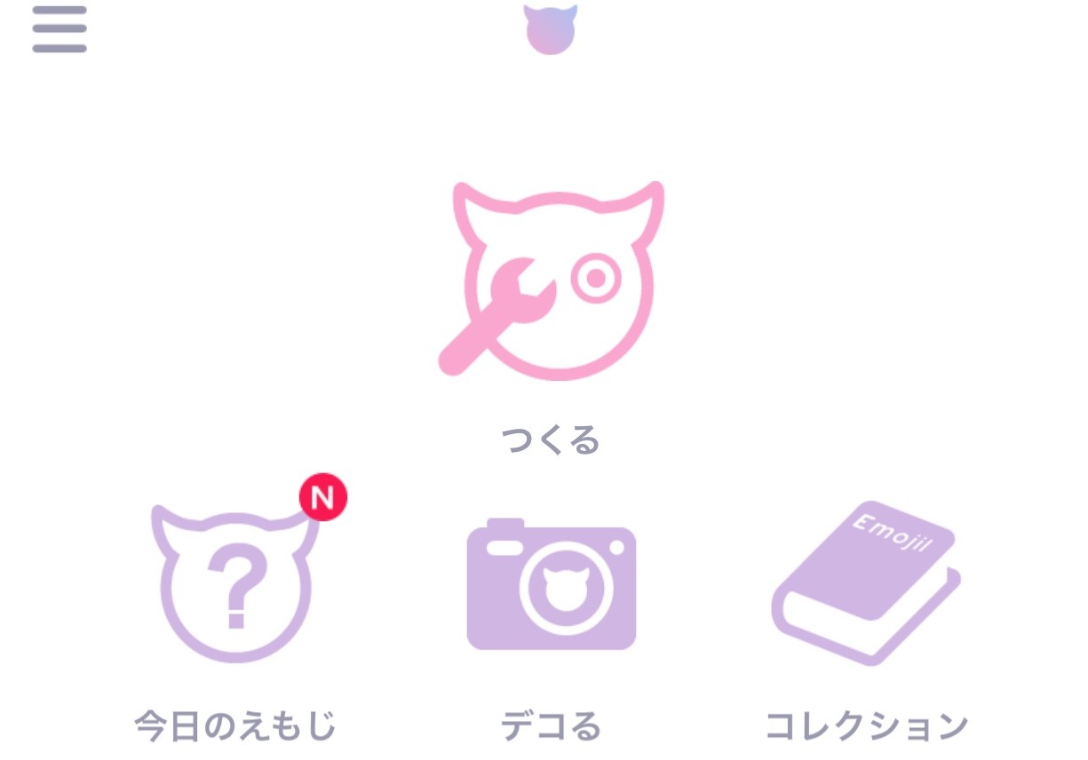 - 自分で絵文字をつくる場合は、最初の画面で「つくる」をタップします。