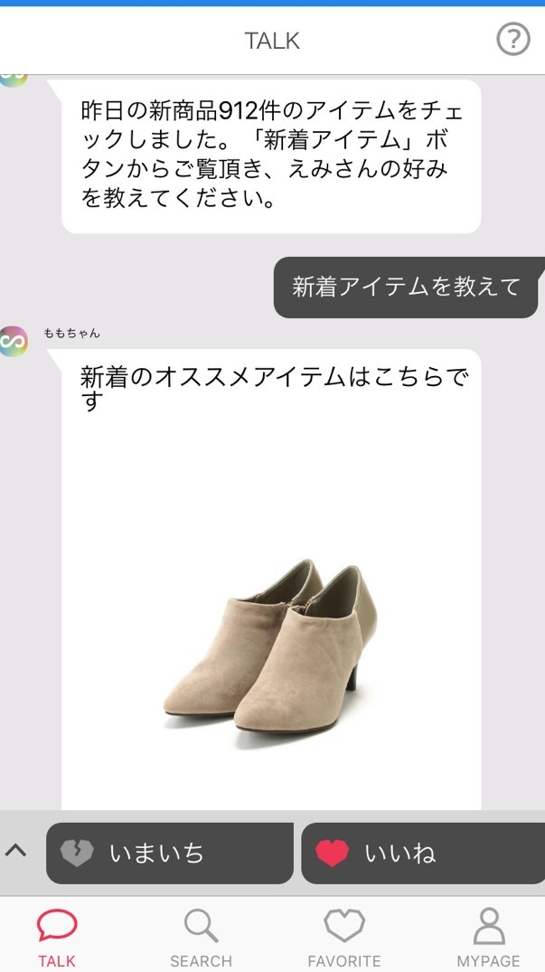 アプリ内に表示されたアイテムを好きか嫌いか選ぶことによってAIがあなた好みのセンスを学習し、その傾向に合わせてどんどん紹介してくれます。