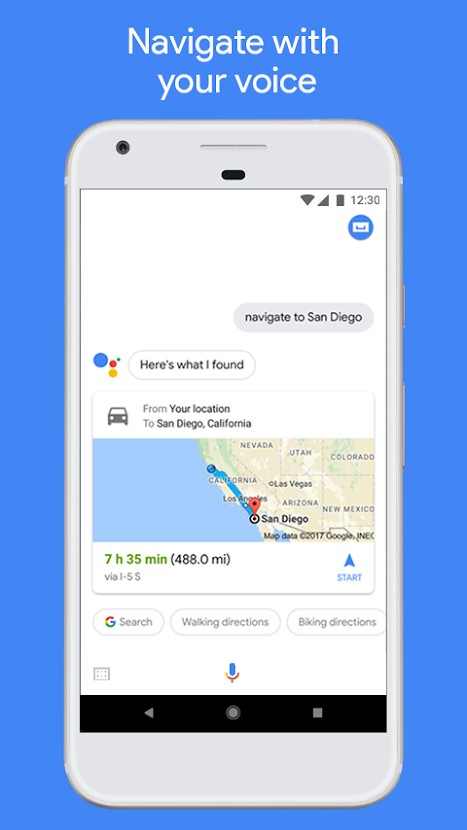 ここから○○まで、と今いる地点から目的地までのルートを調べたり、天気や海外の今の時間を聞いてみたり、好きな動画や写真を話しかけて表示させたりと、音声だけで要求に答えてくれる便利なアプリです。