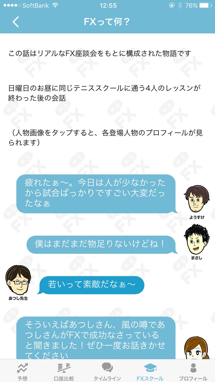 「かるFX」では、バーチャルの中で実際にFX取引を行うことができ、しかも、利用している人とコミュニケーションを取りながら、FXを学んでいくことができます。
