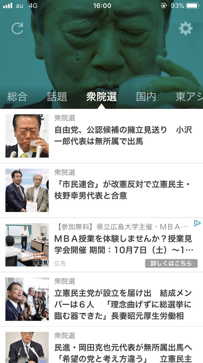 テレビや新聞を見る暇がない人には是非試してもらいたいニュースアプリ。カテゴリ分けされた見やすい表示で、通勤や通学のちょっとした時間で気になる記事を読むことができます。写真とインパクトのある見出しで気になる記事が一目瞭然。芸能・エンタメに強いアプリですが、政治経済ニュースも最速更新で、他のアプリに引けを取らない内容です。国内カテゴリの中にさらに3つの「社会」「経済」「政治」が用意されていて見たいニュースをピックアップでき便利です。