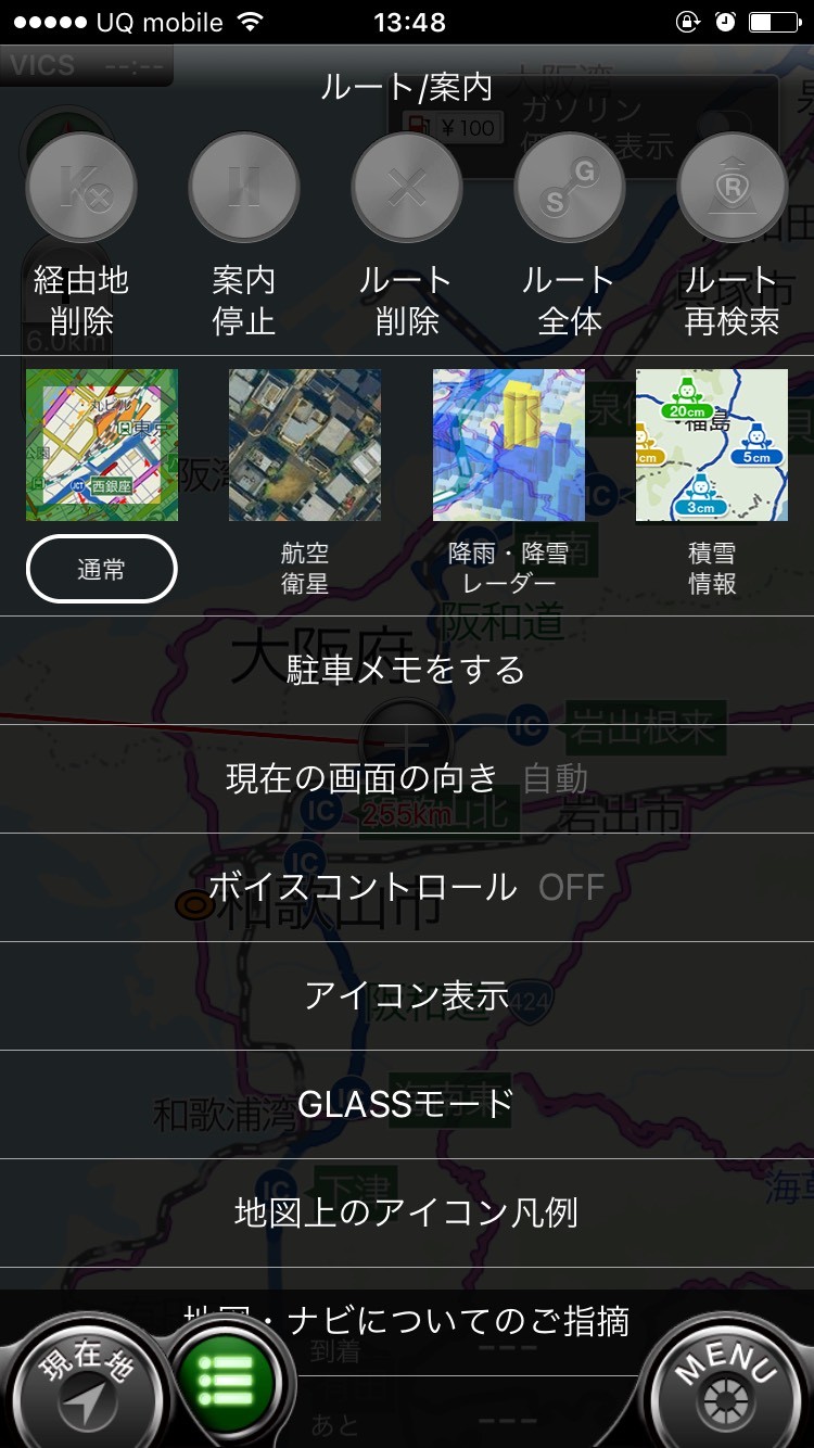 また、細やかな駐車場の満車/空車情報や、地図表示の様々な切り替えも可能。地図は航空衛生の写真マップ、降雨降雪レーダーマップ、積雪情報マップに切替できます。