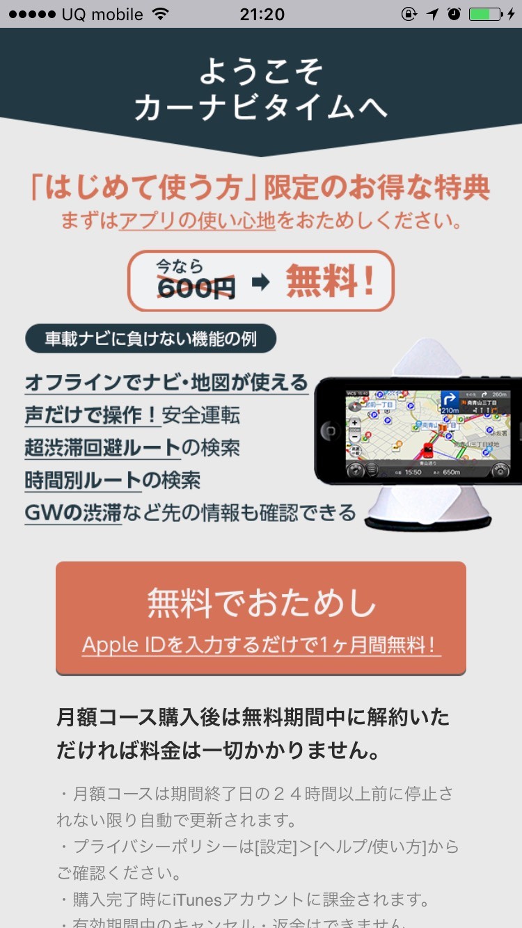 常に最新の道路状況をアップデートしているため、快適にドライブが可能です。有料アプリではありますが、最初の1ヶ月はおためし期間として無料で使うことができるため、優れた機能を無料で体験することができます!