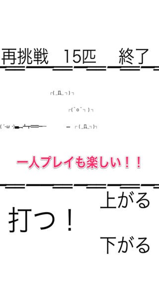 「狙い撃つぜ」というカワイイけどシュールなシューティングゲーム。時間があって、なおかつそんなにのめり込まないライトなゲームを探している時にはオススメします。2人いても先に述べた対戦をしていれば、時間つぶしにもなります。この顔文字やらインベーダーのニコニコ感やらが、おもわずつっこみをいれたいようなゲームです。もちろん「無料」でダウンロードできますのでやって見てください。シンプルなところが結構面白いという声があるので、同アプリ、続編狙い撃つぜ2もあるとのことです、興味がある人はそちらもトライしてみてはいかがでしょうか?それにしてもニコニコしている顔文字がなんとも可愛らしい。