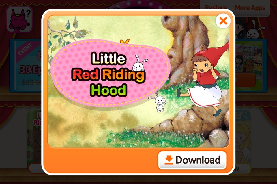 誰もが知っている物語「赤ずきんちゃん」を、オリジナルな形で仕上げ直したアプリです。イタリア人アーティストによるカラーイラストと、高品質な音声ナレーションがアプリの特徴!既存の童話とはちがったストーリーを読ませたいのなら、こちらの赤ずきんちゃんをオススメします。7つの言語を選べるので、英語以外の学習にも効果的です。