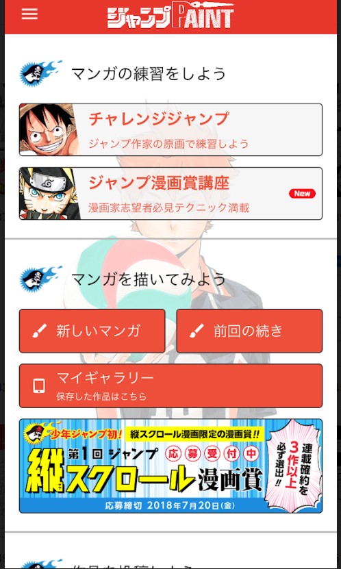 まず、マンガを描くこと自体が全く初めてという人には、「チャレンジジャンプ」というコンテンツをおすすめします。