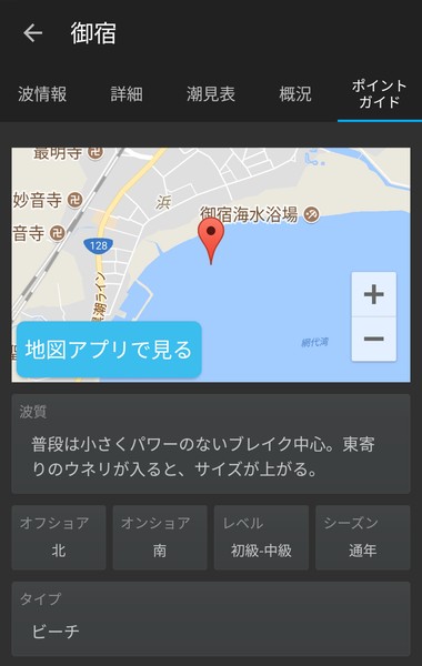 サーフポイントの波質や特徴などもを確認することも可能です。