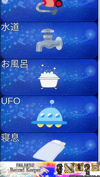 そんな単純なアプリながら、流せる音が豊富に収録されており、どの音も赤ちゃんが好きそうな音ばかりです。