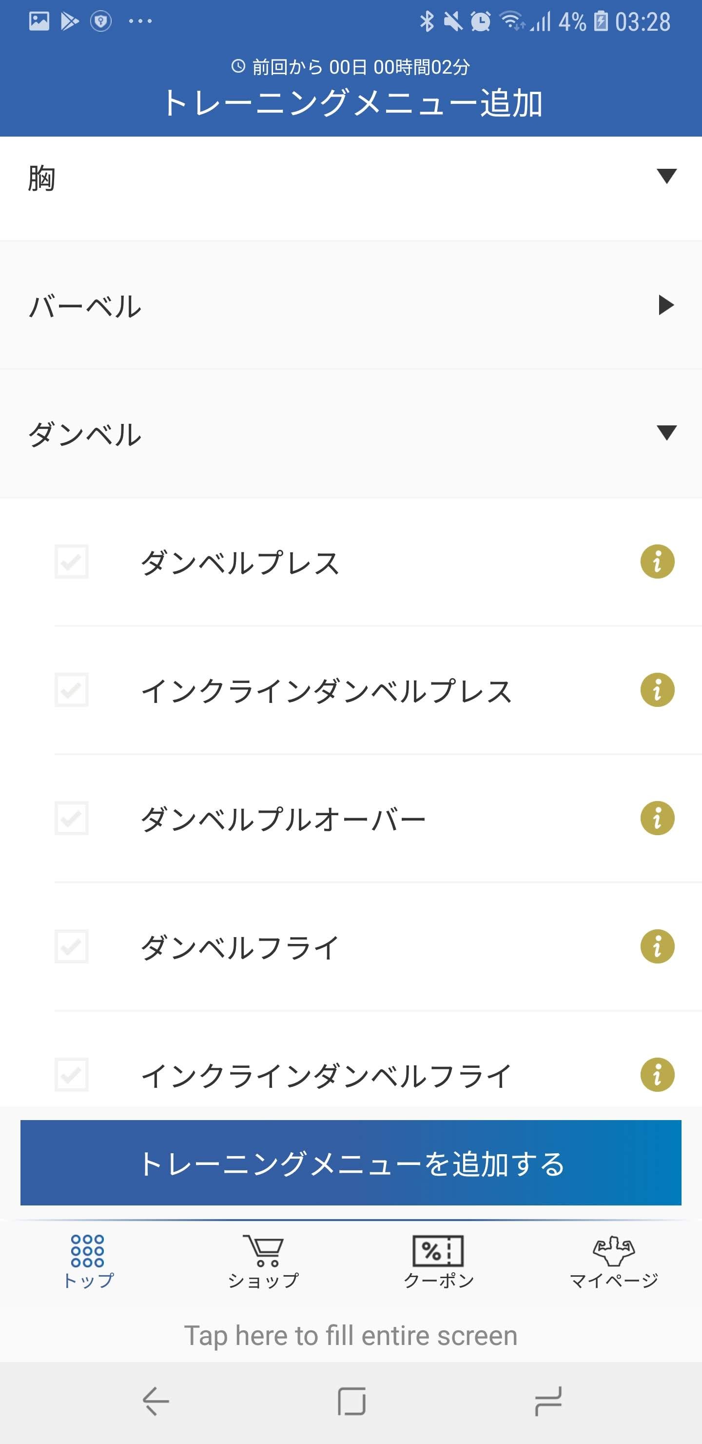 トレーニングメニューも豊富に対応していますので、さまざまな筋トレを記録することができます。