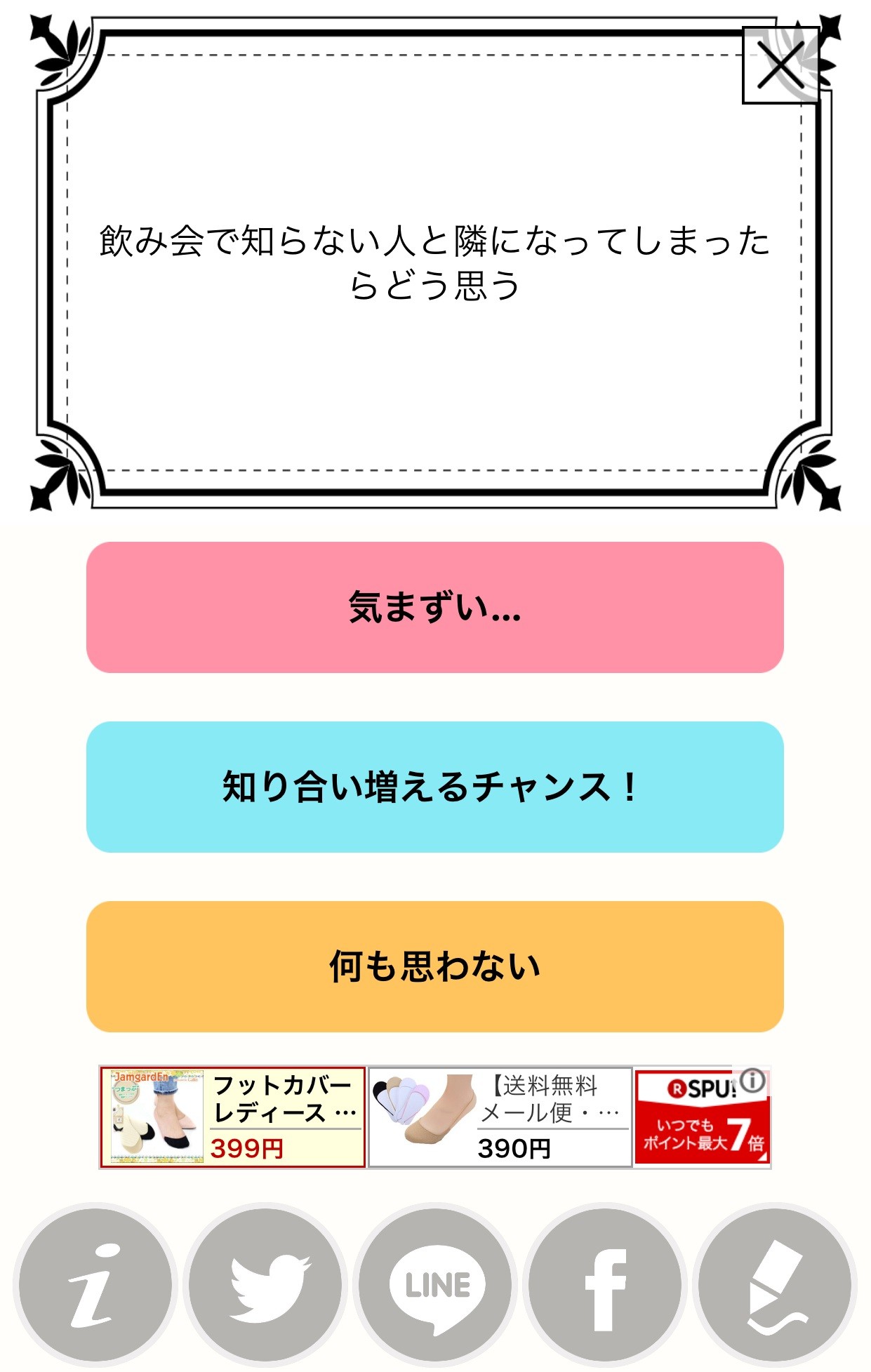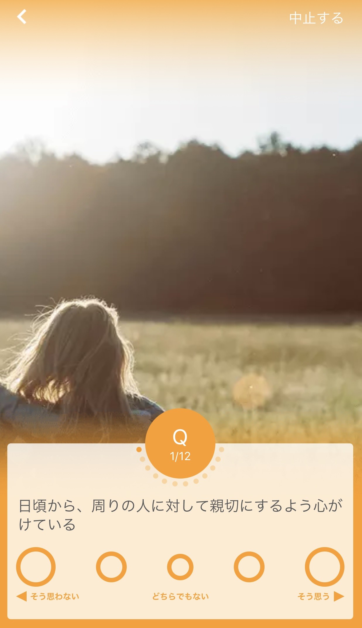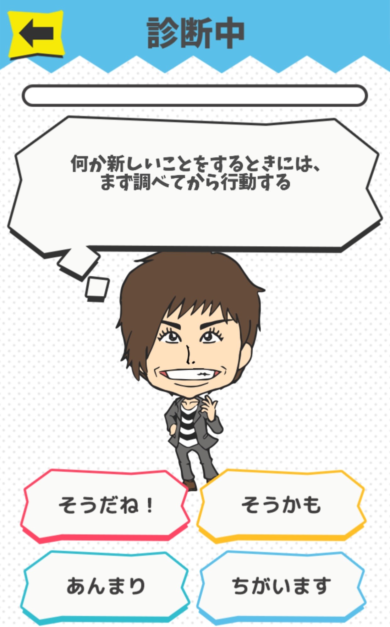 5つの項目から1つ選ぶと、上図のように質問が表示されますので、5つの選択肢の中から直感で答えていきます。