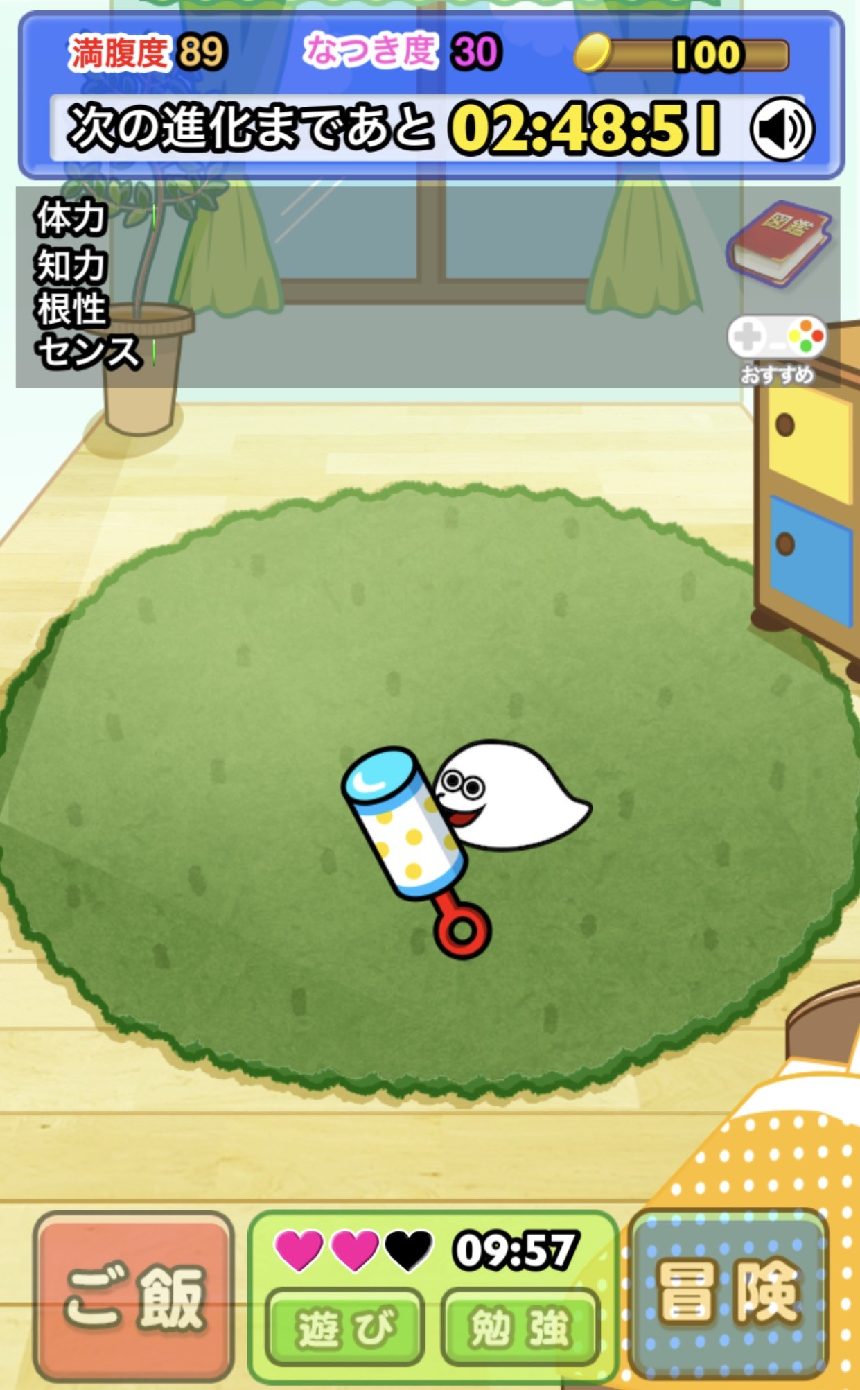 また、このアプリでは高度な性格診断を行うために「プニョ」という謎の生物を育てていきます。「プニョ」にご飯をあげたり、遊びをさせたり、勉強をさせたりすると「プニョ」のパラメーターや「なつき度」が上がります。さらに、日にちが経つと「プニョ」が進化します。「プニョ」が進化すると、また性格診断をすることができ、性格診断が終わると「プニョ」の育成をします。育成ゲームと一緒に性格診断をしていくだなんて斬新ですね。「究極の選択」の性格診断も気になりますが、「プニョ」がどんな風に成長していくのか、気になります!