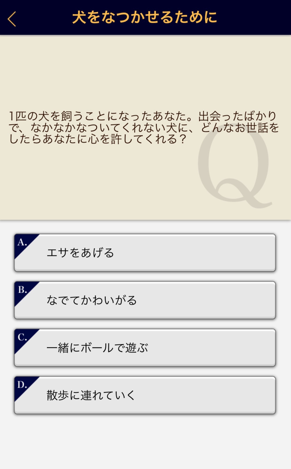 このアプリでの診断方法は、上図のような質問に4択の中から選んで答えていきます。