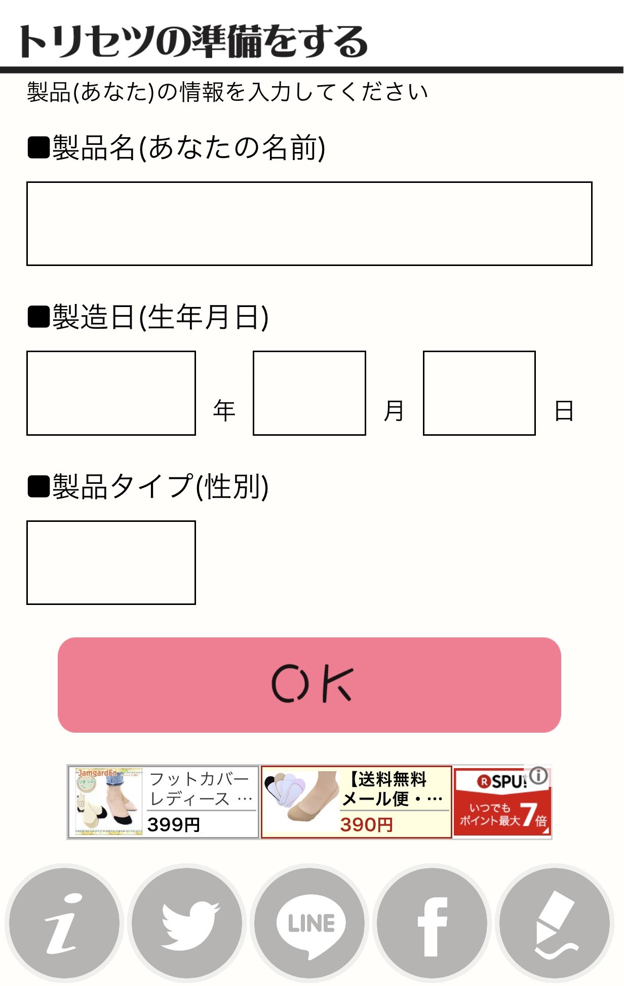 このアプリで性格診断をするには、まずは名前、生年月日、性別を入力します。