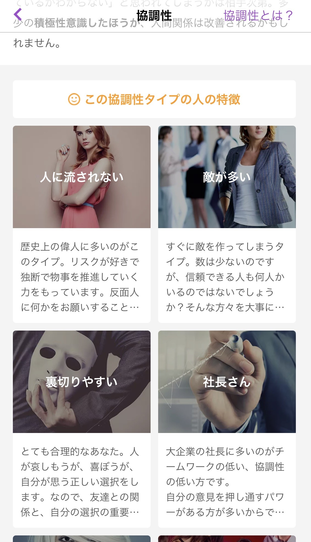 さらに、タイプキャラクターにはこんな人が多い、という性格の特徴も知ることができます。