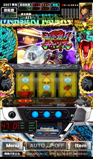ゲームで馴染みがある方も多いのではないでしょうか。人気ゲームのMONSTER HUNTERよりスマホスロットアプリ「[GP]モンスターハンター月下雷鳴(パチスロゲーム)」のご紹介です。ホールでも中々空き台とならないモンスターハンター月下雷鳴が、普段使い慣れたスマホで楽しむことができます。スマホアプリ特権の設定選択で高設定をプレイし、実機ではなかなかお目にかかれない特別な演出やフリーズ演出などを堪能するのも楽しみ方の一つです。
