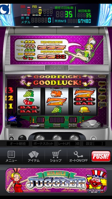 スロットAタイプの王道ジャグラーシリーズよりミラクルジャグラーが無料で楽しめます。ボーナスだけでコインを増やしていくシンプルなゲーム性で、幅広い年齢層で愛され続けている人気のジャグラーシリーズです。ピカッと光る「GOGO」ランプの興奮は実機そのもの。フリーズやリールフラッシュ、告知音も忠実に再現されていて、ホールに行けなくてもいつでもジャグラーを楽しむことができます。