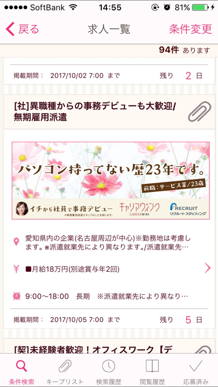 女性向けのお仕事に特化した職場探しアプリです。正社員・派遣社員・バイトなど様々な職種に対応しています。